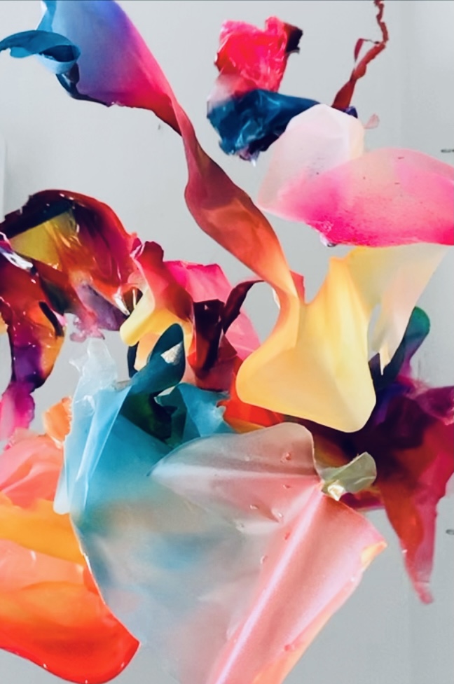 Sie muten auf den ersten Blick an, wie unverwüstliches Plastik, bestehen jedoch aus Pflanzenstärke und Tinte und lösen sich, legen wir sie beispielsweise ins Wasser, binnen Stunden gänzlich darin auf. Ihr Schicksal und Ausgang sind von Beginn an gewiss – wie das jeden Lebens – an Land, zu Wasser und in der Luft.